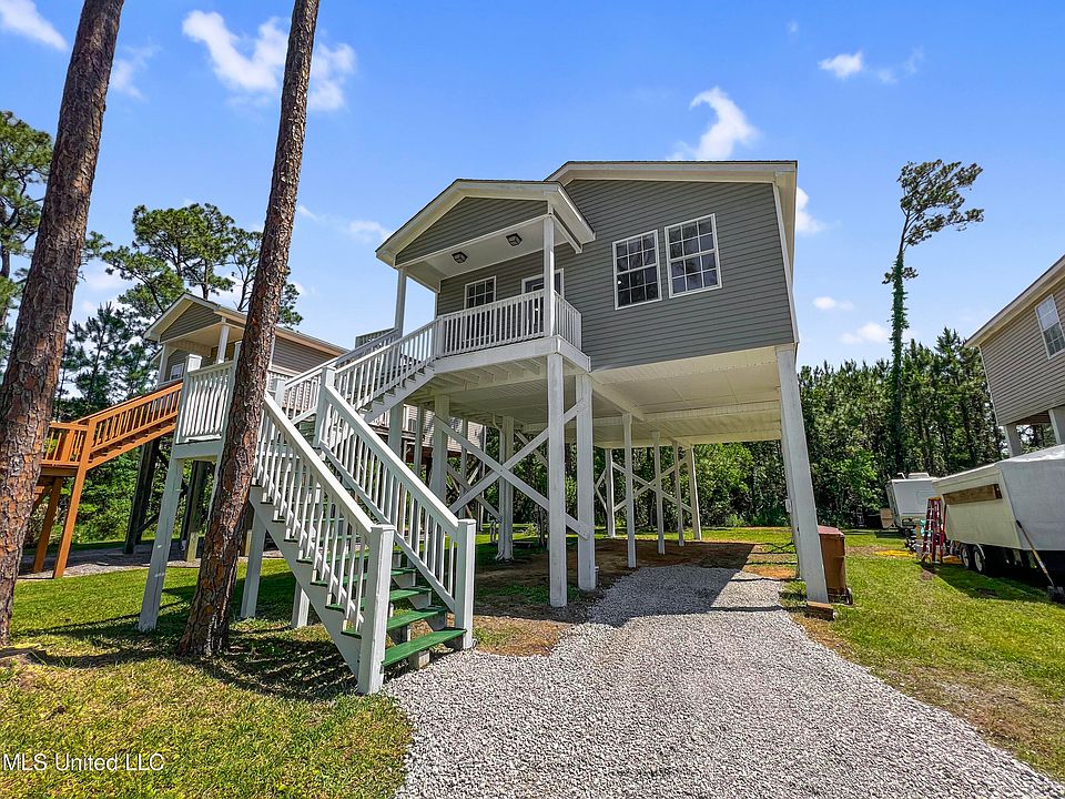 An adorable beach home with loads of possibilities! Completely remodeled & move in ready. This could be used as a vacation rental, long term rental, or your forever home. USDA 100% FINANCING ELIGIBLE! Close to the beaches of Pass Christian & less than 5 min drive to downtown Bay St Louis. This location is secluded feeling, but central to the best the Coast has to offer. 3 bedrooms, 2 full baths, custom-built cabinets with soft close hinges, movable custom-built island, epoxy countertops (scratch resistant, hot-pot resistant & FDA food safe approved), major foundation & subfloor reinforcements and upgrades. Have peace of mind every surface has been touched & redone to great condition. 9' ceilings, LED lighting & fans, luxury vinyl planks throughout, fully enclosed underbelly of home with plenty of boat or RV parking underneath.
