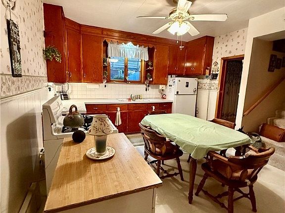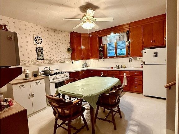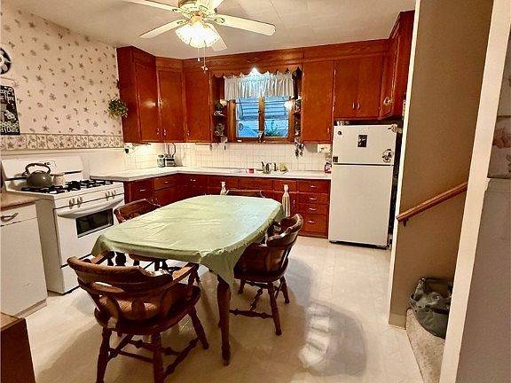 The spacious living area provides a warm, inviting space to relax or entertain, while the eat-in kitchen offers ample room for cooking and dining. Each of the three bedrooms is generously sized, and there is an added first floor room for home office setup, or guest space. Kitchen includes ample cabinet space. Each of the three bedrooms offers cozy comfort with generous closet space, while the full bathroom is conveniently located on the first floor along with one of the bedrooms. Don't miss your chance to own this move-in-ready home that combines value and space. Home is being sold as-is.