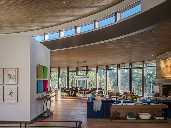Cascading creekHeated deckSnow-covered peaksSignature curved silhouetteTree filled parcelSun-drenched ridgelinesSpa-like primary wing
