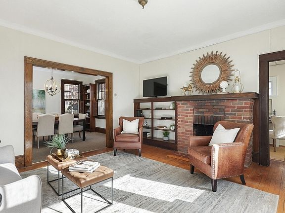 Wood-burning fireplaceSunny eat-in kitchenPrivate backyardFinished third-floor bonus roomBeautiful curb appealHardwood floorsSpacious basement