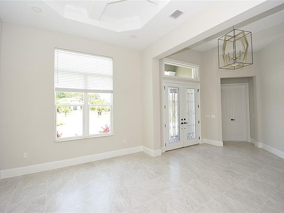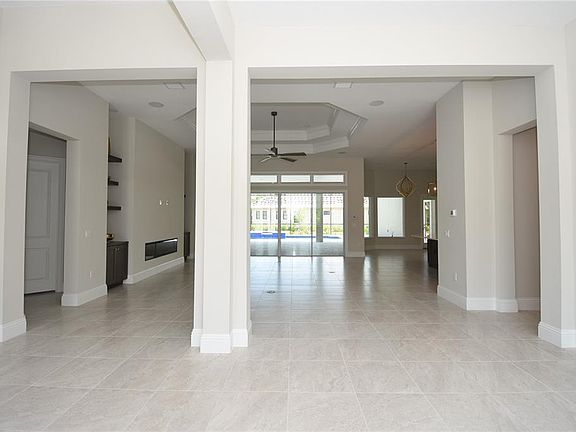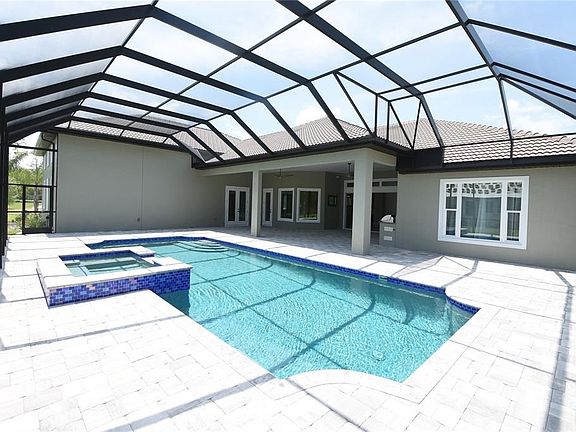 Oversized islandScreened-in lanaiLarge family roomQuartz countertopsHigh ceilingsCustom-built shelvesVaulted ceilings