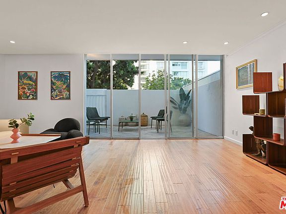 Step into a stylish retreat in the iconic Full-Service Century Park East, where mid-century architecture meets modern luxury. Designed by Charles Luckman in 1966, this celebrated building sets the stage for a one-of-a-kind one-bedroom residence that truly stands out thanks to its show-stopping 250 sq ft private patio. This expansive outdoor haven feels like an extension of the living space and offers endless opportunities: host dinner parties, garden in the sun, create an alfresco lounge it's your own personal outdoor sanctuary in the heart of the city.Inside, the home is bright, open, and thoughtfully upgraded. Floor-to-ceiling windows flood the interior with natural light, complemented by sleek custom motorized blinds. Rich hardwood plank floors, recessed lighting, crown molding, and fresh paint add warmth and sophistication throughout. The kitchen is beautifully appointed with generous custom cabinetry, under-cabinet lighting, and high-end Thermador stainless steel appliances.The oversized bedroom easily accommodates any furniture layout and features another wall of floor-to-ceiling windows framed by crisp plantation shutters. A hallway leads you to an impressive walk-in closet with built-ins and adjustable shelving, plus an additional linen closet for extra storage. The bathroom offers spa-style touches including slate finishes, a jetted soaking tub, separate shower, and an electronic self-cleaning toilet. Plus the convenience of being on the first floor, with easy access to lobby and amenities.. Century Park East delivers a true resort lifestyle with 24-hour valet, concierge, on-site management, security, a sparkling Olympic-size pool with towel service, saunas, a fully equipped fitness center, tennis courts, a dog park (complete with monthly dog socials!), and beautifully landscaped grounds full of flowers and greenery. HOA dues cover water, hot water, sewer, and trash. The unit includes assigned parking, dedicated storage, and valet for both residents and guests.All of this is set in a prime location just minutes from Century City Westfield Mall, Beverly Hills, Santa Monica, Westwood, and UCLA putting the best of Los Angeles right at your doorstep.