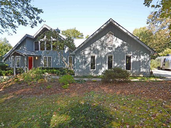 Live the good life from this retro lakefront home with the Corps line nearly in the water. Experience serene lake vibes everyday with the wrap-around Trex deck, gentle grass-to-water path, private beach & awesome outdoor shower. This private retreat features soaring wooden ceilings, 2 big stone hearths, large loft for extra sleeping or rec space & a wall of windows allowing year-round Lake Lanier views. Built for hosting lake days & overnight stays with lots of sleeping space & kitchenette on the terrace level. Platform dock currently in place, but awaiting final approval for a double-slip party dock. Great unfinished space upstairs for additional storage or building out. House has strong bones full of potential & ready for your inspiration & updated vision. Incredible location by land or lake, surrounded by multiple parks & marinas, watch fireworks from your dock, & only moments from all the events at the Olympic rowing venue.