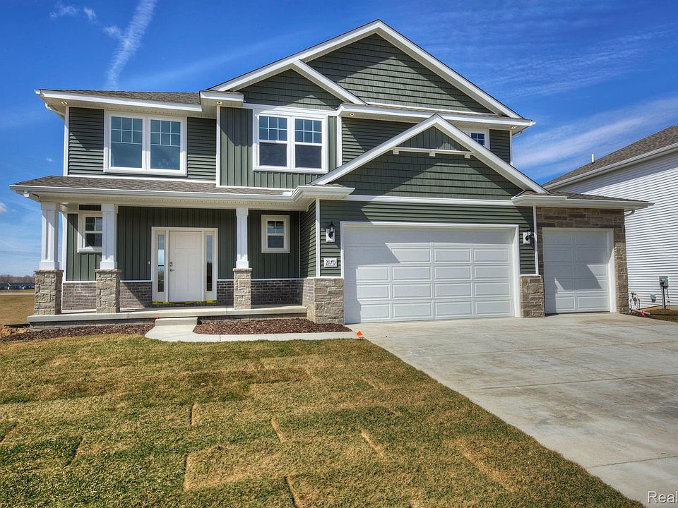 Move in Ready new construction home with 5 bedroom, 3.5 baths. Beautiful 2-story foyer with immediate views of the fireplace and winding stairway. The Addison has an Open Concept living and dining. Kitchen with oversized island, 42" uppers cabinets and soft close doors and drawers, quartz countertops throughout and stainless steel appliances. Spacious mudroom off of attached garage with room built in bench/locker. Beautiful primary suite with ONE OF A KIND large walk-in closet extended height counter w/dual under-mount sinks. 2nd-floor laundry, 9' first floor ceilings, Full finished basement with bedroom, bathroom and rec room with 9' Superior walls. Extreme energy package, Energy Certified Builder, 96% Eff. Furnace and A/C. Includes 1-year builder warranty, gutters downspouts, garage door opener, Trex Deck and Sod and Irrigation! Amazing neighborhood with common areas, clubhouse and swimming pool, baseball diamond, sidewalks and streetlights. Just minutes away from Historic Downtown Howell with loads of restaurants.