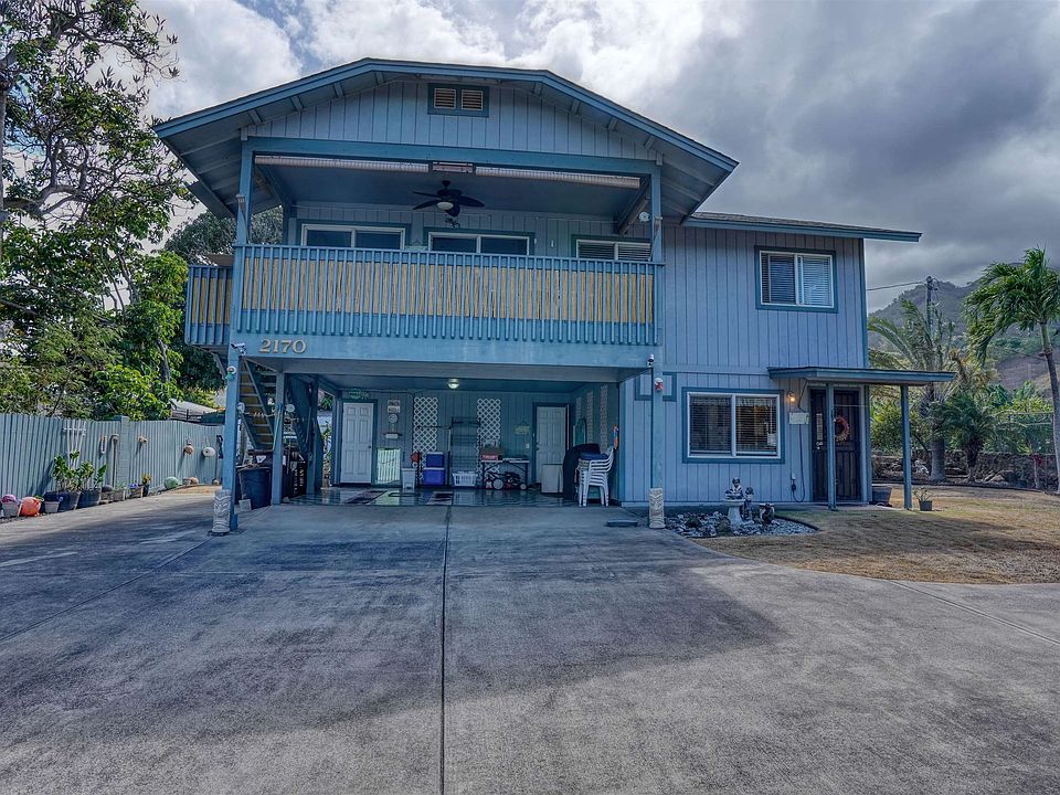 Nestled at the base of the West Maui Mountains in Happy Valley, this well-cared-for Wailuku home offers a balanced blend of comfort, privacy, and convenience. The two-story layout provides flexibility and space. The upstairs features an open floor plan with a welcoming kitchen, movable island, and a large covered deck overlooking Happy Valley and the occasional sounds of the running Wailuku River. The primary suite includes its own bath, complemented by two additional bedrooms and a full bathroom. The lower level includes indoor laundry, ample storage, and a charming one-bedroom nohana with kitchenette and living area — ideal for extended family, guests, or a home office. Additional features include a tiled carport, gated entry, and an extra-large concrete parking area with room for multiple vehicles, a boat, or an RV. Located just two blocks from a community park and close to bus stops, schools, medical centers, UH Maui College, shopping, golf, beaches, and government offices, this home offers true everyday convenience. Partially furnished. No HOA or HOA fees. A 1,496-square-foot residence offering space, lifestyle, and future potential — a solid value in Central Maui.