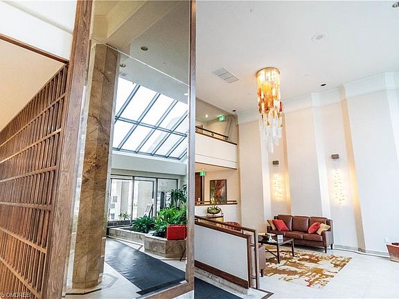Incredible suite & Toronto skyline & lake views! Oh, what a treasured life you will lead lakeside in trendy Bronte! You'll love the spectacular sunrise, sunset, & sparkling lake views from the balcony & every window. Ennisclare II on the Lake is an extraordinary lifestyle location with stellar building amenities & a gatehouse with 24-hour security. You have two side-by-side underground parking spaces, but the cars may get a little dusty because you can walk just about everywhere - restaurants, pubs & one-of-a-kind shops & the new Bronte Village Mall. Direct access to the Waterfront Trail from your complex takes you on a peaceful walk to Bronte Harbour & Bronte Heritage Park. This spacious, updated Braeside model boasts generous principal rooms for entertaining, two bedrooms, two bathrooms, three walkouts & approximately 1400 sq. ft. of living space, plus the large 21'10 x 7'10 balcony offers breathtaking lake & Toronto skyline views. Mirrored feature walls in the entertainment-size dining room & sunken living room ensure lake views regardless of your position in the room. The beautifully updated kitchen is timeless, with white cabinetry, valance lighting, dramatic black stone counters, stone floor tiles, a custom built-in breakfast bar with lake views & deluxe stainless steel appliances. The enormous master retreat features a walkout to the balcony & a gorgeous 3-piece ensuite bath with oversize glass shower. A second bedroom with a walkout to the balcony, a 4-piece main bath & a laundry room complete your living space. 2 parking spaces side by side & locker. Fabulous views!