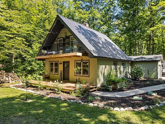Prepare to fall in love with this charming and fully renovated 3 bed/1.5 bath chalet-style home! This home is the quintessential Up North residence with its cozy interior and exposed beams. Remodeled down to the subfloor, recent updates include a new roof and insulation, new upper deck and backyard Trex deck, a new furnace, water heater, water softener, and electric panel. Additionally, this home boasts brand new A/C, new bathrooms, a totally upgraded kitchen with all-new appliances, new interior and exterior doors, fresh interior paint, and new flooring throughout. The main level features a spacious living area complete with a cozy natural brick fireplace, galley kitchen, adjacent dining area, and a large, front-facing deck, creating a lovely outdoor space for grilling, gathering, or dining. A guest bath, as well as a convenient designated laundry and sizable guest bedroom round out the main floor of the home. The upper level hosts another roomy guest bedroom, half bath, and a larger Primary bedroom which features access to a tranquil balcony spanning the entire width of the home.; a perfect spot for relaxing with a cup of coffee and listening to the birds as the sun rises through the treetops. An attached single-car garage offers protection for you and your vehicle. Nestled upon nearly an acre, this beautifully wooded property features lovely paths carved through the trees, showcasing a plethora of Trilliums every spring. This home has plenty of privacy while also being a short drive from the Leelanau TART Trail, West Bay, Leelanau Sands Casino, wineries, cideries, and Suttons Bay shopping, dining, entertainment, and more! Adjacent 7.25-acre parcel available for additional purchase price of $150,000.00.