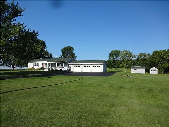This is a very well maintained ranch with nearly 2 acres on a quite country road less than 5 minutes south of Victor that offers a convenient location with a rural setting. Homes features 3 bedrooms, 2 full baths that includes a master suite. Large Kitchen with plenty of counter and cabinets, formal dining room and living room, laundry room, family room with slider to back deck a Gazebo. There is a 3 car attached garage with stairway to basement and automatic door openers. Out back is a 12x20 barn plus an 8x8 shed for additional storage. Note there is a duel water system with dug well and cistern. Nice yard to play in and a blacktop drive with wide turn around offers party parking! This is a must see property.