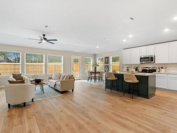 A stunning modern new construction home by Jackson Becker Communities builder, located in the beautiful community of Lago Vista, TX. This single-story residence is artfully designed with a sleek, modern elevation, providing a perfect blend of style and functionality. Step inside to discover a spacious open floor plan featuring four bedrooms and two bathrooms. The heart of this home is the great kitchen, showcasing a striking contrasting color island that serves as a focal point for culinary creativity and entertaining. The abundance of windows fills the home with natural light, creating a bright and airy ambiance. The primary suite offers a luxurious retreat with its walk-in shower, making it a perfect oasis for relaxation. The home has ample space for outdoor enjoyment and future landscaping dreams. Step outside onto a large elevated wooden deck and enjoy views of the trees and skies with no house behind you. Residents of this home can enjoy access to a range of premium community amenities, including city pool, golf course, gym, and tennis/pickleball courts. The property is also ideally positioned to take advantage of the picturesque lakefront, providing endless opportunities for recreation and enjoyment. There are no restrictions on the home as far as storing your boat or other recreational vehicle on your lot. Embrace the unique lifestyle and amenities that the Lago Vista community has to offer, and make this modern home your own. For more information, please contact your agent today.