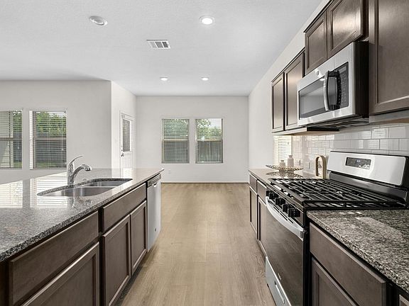 Seller offering a 2-1 buydown starting at 3.99% Located in The Commons at Rowe Lane, this well-cared-for 5-bedroom, 3-bath home has just over 2,800 square feet of flexible living space designed to fit today’s lifestyles. The main level features an open kitchen, dining, and living area that makes it easy to cook, connect, and entertain at the same time. The kitchen has a large center island, stainless appliances (which includes a gas oven that still has a 2 year warranty and a brand new refrigerator), and a sizable pantry—creating a functional and fabulous space to gather. The primary suite is tucked away on the first floor with a huge walk-in closet that has an Harry Potter style storage space and a spa-like bathroom that includes dual vanities, a soaking tub, and a separate shower. A second bedroom and full bath downstairs create a private setup for guests, parents (multi-generational living at its best), or a home office. Upstairs, you’ll find three additional bedrooms plus a massive game room that can adapt to whatever you need—whether that’s a media space, playroom, or second living area. The backyard is fully fenced with an in-ground sprinkler system, so it’s ready for weekend barbecues, pets, or simply enjoying time outdoors. A two-and-a-half car garage gives you extra room for storage or hobbies. Living here also means access to community amenities including a pool, playground, park, BBQ grills, and sport courts. And with nearby access to TX-130, TX-45, and I-35, commuting to work, shopping, or dining is straightforward. The home is zoned to Pflugerville ISD schools. If you’ve been looking for a home with room to grow, spaces that work for everyday living, and a community with amenities to match, 21701 Urraca Lane checks all the boxes.