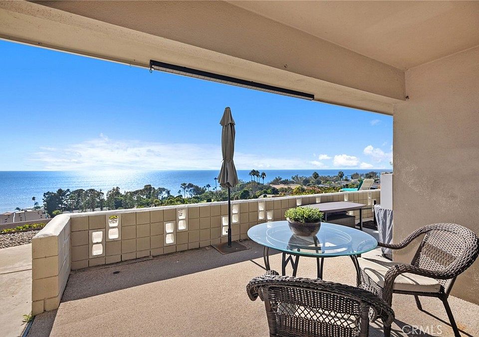Prepare to be mesmerized by sit-down panoramic ocean and whitewater views overlooking Aliso Creek Beach, Montage Resort, Treasure Island and Frederick Lang Parks, including sceneries of beachgoers, surfers, stand-up paddle boarders, sailboats, and beach sand! This single level, 2BD/1BA ground floor condo has a private garage, storage, view patio, and wide blufftop walkway! Watch the captivating Catalina Island sunsets, the moon highlighting the shimmering ocean, twinkling lights, and picturesque hillsides. Bring your binoculars and you might see whales and dolphins just yards beyond the shoreline! Gather fresh herbs from the garden and dine al fresco enjoying the gentle ocean breeze. Step inside to find a seamless blend of light and bright, indoor-outdoor living with an open concept floor plan, featuring an updated and well-organized kitchen: polished and sleek Cambria Quartz countertop and breakfast bar, Seastone Medallion tile backsplash, upgraded stainless steel appliances (Fisher & Paykel oven, G.E. Profile, and Frigidaire), stylish range hood, custom cabinetry with glass enclosures displaying your favorite serve ware, wine rack, and more! New LR carpet. The Seller contributed to the new roof! The floor plan is larger than some of the other 2BD/1BA in the community. Have a dog? The spacious, primary bedroom features its own enclosed private back patio entry. The secondary bedroom, with a deep closet is large enough for housemates, home office, or gym. The large bathroom features dual sink vanities, shower-in-tub combination with bench, and glass enclosure. Savor the serene, relaxing feeling of a beach resort! A solar-heated swimming pool, lounge chairs, cabana, and BBQ area, all with ocean view, make for a priceless, luxuriating experience! Enjoy the simple life with a convenient lifestyle at a gem of a beach town. Take a short stroll, within minutes to 5-star, 5-diamond world class Montage Resort with its signature restaurants, Treasure Island Park, coves, white sand beaches, and scenic walking trails. Just down the walkable street, are top choices for your palate: La Sirena Grill, Starfish, O, Golden Spoon, Drake. The Ranch’s 9-hole golf course and Harvest Restaurant, downtown Laguna Beach art galleries, shops, restaurants, art festivals, and Laguna Playhouse are within minutes by car or trolley. Make this your vacation getaway, primary home, or investment property. Inquire about rental comps. Short 1031 exchanges considered. Schedule a visit today!
