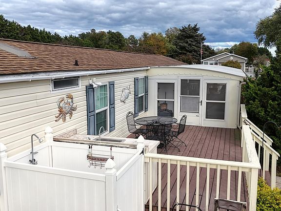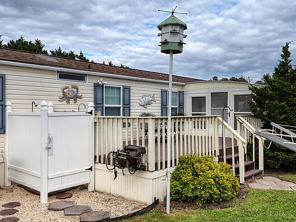 Meticulously maintained mobile home boasts a large enclosed porch with screens for warm weather and all-weather plastic slats to insert and enjoy the space even in the cold weather! Extend your outdoor enjoyment with the lovely deck which includes its own sink & custom countertop for outdoor food prep or cleaning your catch of the day. Wash off the beach sand in the private outdoor shower. This lovely 3 bedroom 1 bath home is tastefully decorated and being sold furnished, ready for YOU! Includes a Honeywell WIFI thermostat, new kitchen appliances, new windows in all 3 bedrooms, hot water heater new in 2018, Smart TV in master bedroom at rear of home, flat screen mounted TV in living room, plus 3 lovely ceiling fans in the kitchen, living room & master bedroom. Also included is a fantastic golf cart with front and back seating, and 2 kayaks which are stored on the side of the large storage shed out back. Seller is also including a one-year home warranty. Rehoboth Bay Mobile Home Park is such a quiet, desirable spot for a beach home or to live year round. Amenities include a private beach, playground and pool, only available to the residents and their guests. Enjoy the brand new basketball, tennis & pickle ball courts too! Private marina with slips available for a fee. (check with Park management for details) Located just 15 minutes from downtown Rehoboth with shops, restaurants, boardwalk and beach along the ocean. You will love living here! Schedule YOUR tour TODAY!