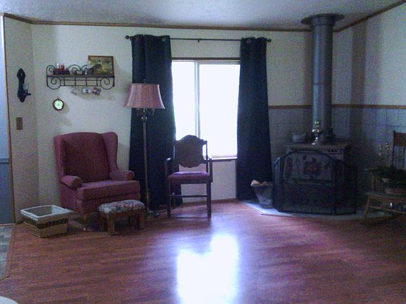 Close in acreage, Mead schools, 3 bed, 2 full baths, vinyl windows, kitchen with a sky light, island w/veg sink. All appliances stay, master bedroom has a walk-in closet and shower. 30X24 garage/shop all on 7+ acres with a stream running through it. New roof 3 years ago.
