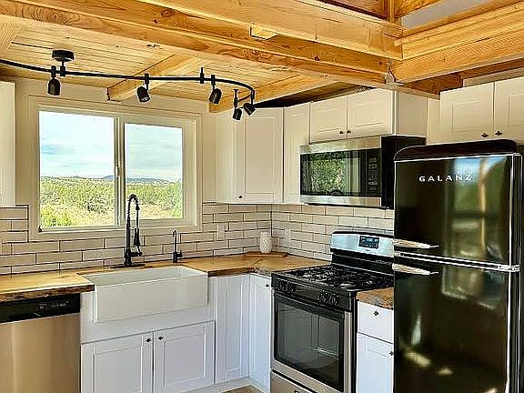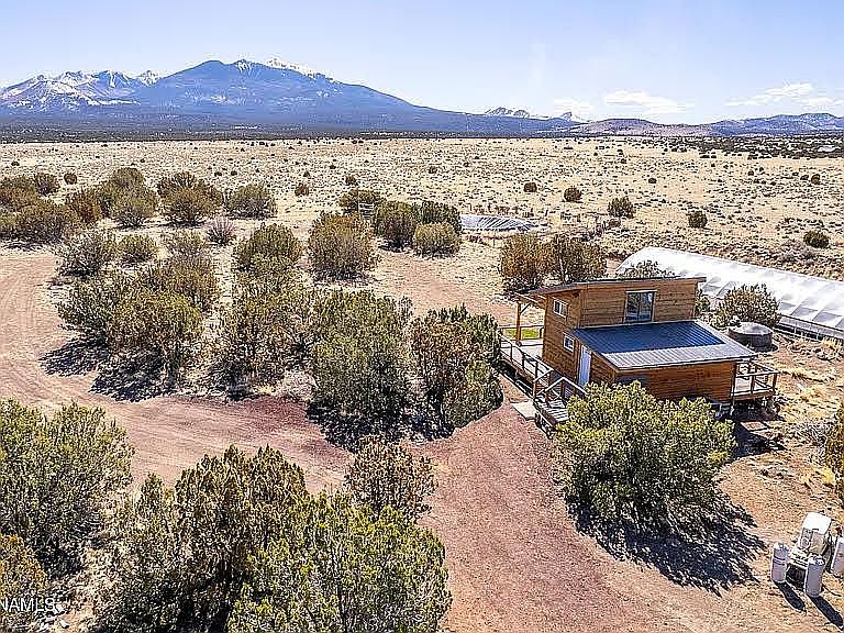 Discover a unique opportunity to own a self-sufficient property at 21705 North US-89. This 7-acre property blends modern sustainability with agricultural potential. The 20x20 off-grid tiny home features solar power, battery storage, a generator, a greywater system, and a 2,500-gallon water cistern for self-sustaining living. A 30x100 greenhouse, with a 6,000-gallon rainwater catchment tank, drip irrigation, drop down sides, and a wood-burning boiler with hydronic heat, enables year-round growing. Water resources include a 75,000-gallon catchment pond and a 40-ft shipping container storing 20,000 gallons. Additional features: a 10x10 shed, fenced growing areas, fertile soil amended heavily with compost, and small fruit trees. Surrounded on three sides by forest service land, with easy access off Highway 89, this off-grid sanctuary offers privacy and functionality—ideal for homesteading and sustainable living.