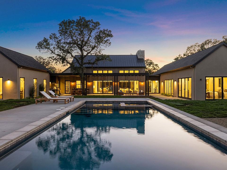 Just completed 3 bedroom plus office with full bath/4.5 bath main house plus detached pool house on 2+ acres. A beautiful Oak studded parcel with privacy, lush landscaping, in-ground pool, solar, and gated entry. Just minutes to the historic Plaza. High end finishes throughout with hardwood floors, open beam ceilings, Chef's kitchen, walls of glass, and incredible indoor/outdoor flow. Impressive in every aspect. 5 bedroom septic so additional bedrooms or guesthouse possible. Main house 3,609 sq ft, pool house 400 sq ft, ramada 291 sq ft, and garage 618 sq ft plus an additional 2 bedrooms on the new septic to allow for more bedrooms/guesthouse/etc. Property can be offered fully furnished.