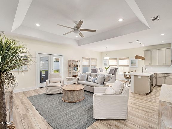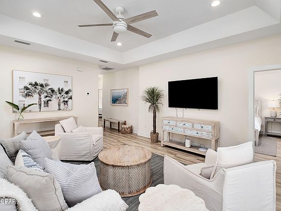 Welcome to Palm Paradise, a beautifully designed 3-bedroom, 2-bath coastal retreat nestled on the highly sought-after west end of Panama City Beach. Just a few short blocks from the sugar-white sands and emerald waters of the Gulf, this professionally decorated home is sold fully furnished and rental-ready, offering a true turnkey opportunity for those seeking a beachside escape or investment property.