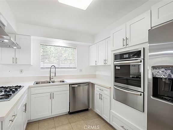 The kitchen contains new Quartz counters and is equipped with all new appliances, including stainless steel dishwasher, electric oven, and refrigerator.