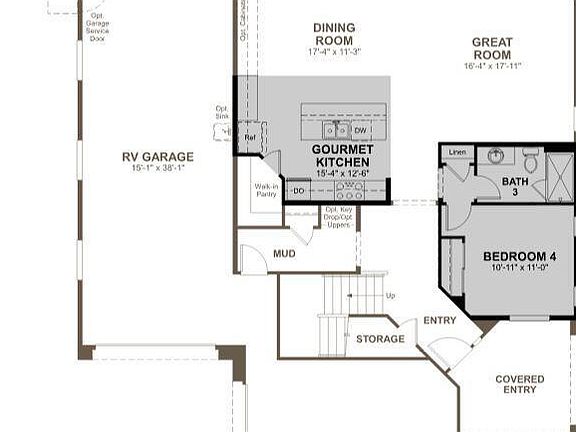 Introducing Light Sky Ranch and the Pearce model, showcasing a thoughtfully crafted layout designed to elevate your living experience. Step into the main floor where a generously sized great room welcomes you, seamlessly merging with a captivating gourmet kitchen featuring a walk-in pantry, central island, and adjoining dining area with access to a covered patio. Ideal for guests or as a private office space, a first-floor bedroom and full bathroom provide added flexibility, while a mudroom enhances daily convenience. Ascend to the second floor to discover a laundry room, a spacious loft, and three additional bedrooms, including an indulgent primary suite boasting a luxurious private bath and expansive walk-in closet. Beyond the 2-car garage, embrace the versatility of a 38' attached RV garage, catering to all your storage needs. Efficiency meets elegance with amenities like a tankless water heater, while a charming paver driveway adds to the home's allure. Experience the perfect blend of convenience and sophistication in this exquisite residence.
