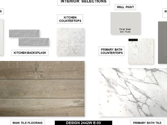 Home office with French doors set at two-story entry. Two-story family room opens to kitchen and morning area. Kitchen features large walk-in pantry and generous island with built-in seating space. Family room features wall of windows. First-floor primary suite includes bedroom with wall of windows. Dual sinks, garden tub, separate glass-enclosed shower and large walk-in closet in primary bath. Game room and all secondary bedrooms are upstairs. Extended covered backyard patio. Two-car garage.