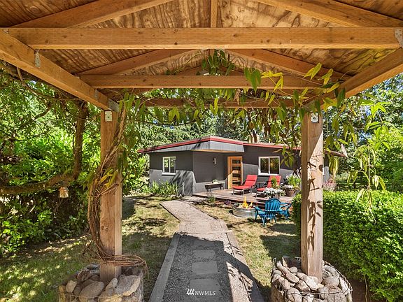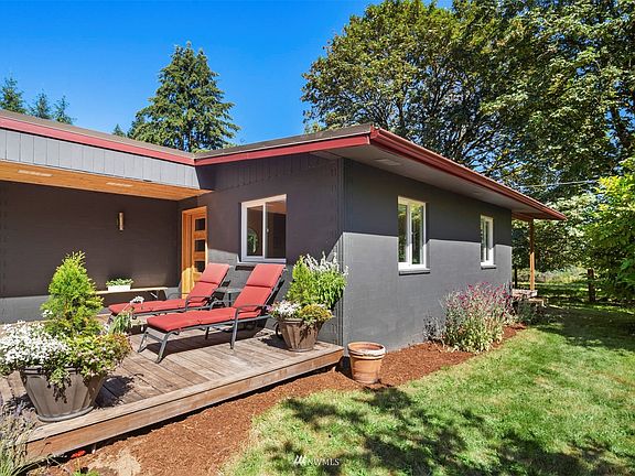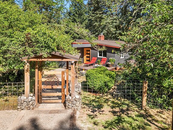 Modern & minimal Mid-Century home w/pastoral Views. Enter through artistic gated entry into your own private countryside retreat! Fully updated 1 bed, 1 bath 1950's home on 3.6 level acres. Inside, expect sleek finishes fused w/original features, light-filled windows & open-concept living & dining space. Relax & enjoy views of the forest & pasture. Indoor-outdoor living made easy via sliding glass doors onto back deck. Entrance offers firepit & second Ipe hardwood deck perfect for seating, sunbathing or summer dinners. Outbuilding, fully-fenced meadow & deer-proof orchard w/old growth fruit trees. Bring horses or farm animals to make this plot a true rural escape. Enjoy all-day sun & quick access to town center, Burton, ferries & beaches.