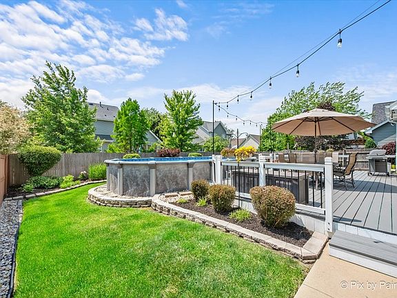 Welcome to the highly desirable Four Pointes subdivision in Kane County, within the sought-after Oswego School District 308! This beautifully updated 3-bedroom, 2.5-bath home offers nearly 2000 sq. ft. of living space and is move-in ready. The open-concept first floor features 9-foot ceilings and dark Pergo flooring, creating a warm atmosphere. Enjoy a separate living room, dining room with wainscoting, and a spacious family room-ideal for both formal and casual living. The updated kitchen is equipped with modern appliances, soft-close cabinets, and a cozy dinette area. A half bath and brand-new washer and dryer add convenience. Step outside to your private oasis with a spacious deck, perfect for morning coffee or summer BBQs. The new '23 above-ground pool, deck lights, and attached natural gas grill create the ultimate outdoor space for entertaining. With a 2-car garage and ample parking in the driveway, there's plenty of room for guests. Upstairs, you'll find 3 spacious bedrooms and 2 full baths, including a master suite with an updated shower. The fenced-in yard and beautifully landscaped exterior provide the perfect outdoor setting. With no HOA fees and easy access to parks, shopping, dining, and top-rated schools, this home offers comfort in an unbeatable location. Make a splash with this one-of-a-kind home!