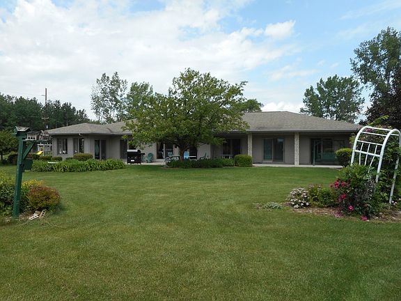 Looking for your own piece of heaven? This 4 bedroom 2600+ square foot "berm" home could be yours! Berm style construction makes for a very efficient home, and the South facing side boasts 6 Sliding Glass Doors that open onto the patio, for tons of sunlight! There are Granite counter tops in the kitchen, with newer appliances, and newer water heater. A Wood burning fireplace that could heat the entire house is in the living room. The 4 Bedrooms each have a sliding glass door, 3 onto the patio, and one onto the Entry Courtyard. Master suite includes a walk in closet and a full bath with separate tub and shower, and dual sinks. There is also a three season porch off the dining room which overlooks the pond. The 5 acre lot features a nearly 1 acre pond, stocked and ready for fishing fun, as well as a 30 x 40 Detached garage, with 220 electric, 2 9 foot tall doors, and a separate furnace. Call now for your private showing of this unique home. .