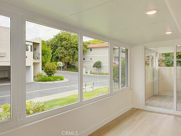 Light, bright, and newly remodeled single-level 2BR/2BA in Laguna Woods Village (55+) Gate 5 with no one above or below and same-level carport for easy access. A reimagined plan opens to an enclosed, covered patio converted to a sunroom-perfect for office, art space, or morning coffee. The living room with built-in entertainment center and electric fireplace is bathed in natural light from a Velux solar skylight with remote-control shade. The new kitchen adds a walk-in pantry, GE range & refrigerator, Bosch dishwasher, and euro-style hood. In home laundry with LG washer/dryer. Year-round comfort via an energy-saving mini-split A/C (ceiling cassette) with independent zone control. The primary suite features a remodeled bath with double vanity and linen cabinet. Solid wood interior doors with Craftsman-style entry door. Approx. 1133 sqft of easy single-level living plus a sun-filled bonus room. Enjoy resort amenities - clubhouses, 5 pools & spas, 27 hole golf courses, tennis courses, fitness centers, equestrian facilities, garden centers, library, art & crafts, studios, and 200+clubs- about 6 miles to Laguna Beach and close to shopping, dining, medical, and major routes.