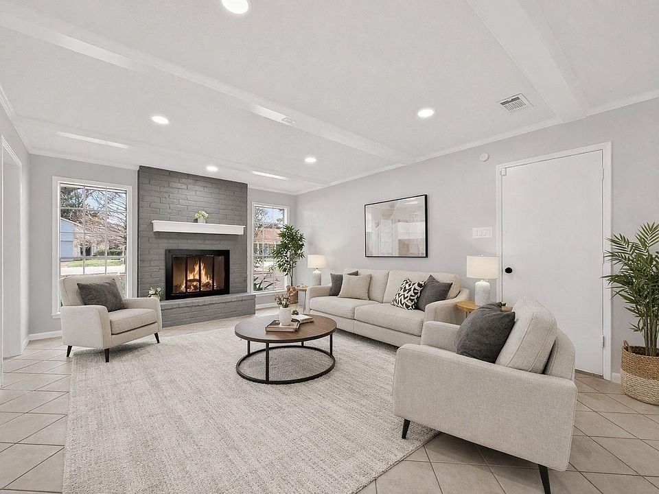 Cozy fireplaceDedicated home officeAttached two-car garageOpen-concept layout