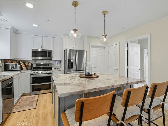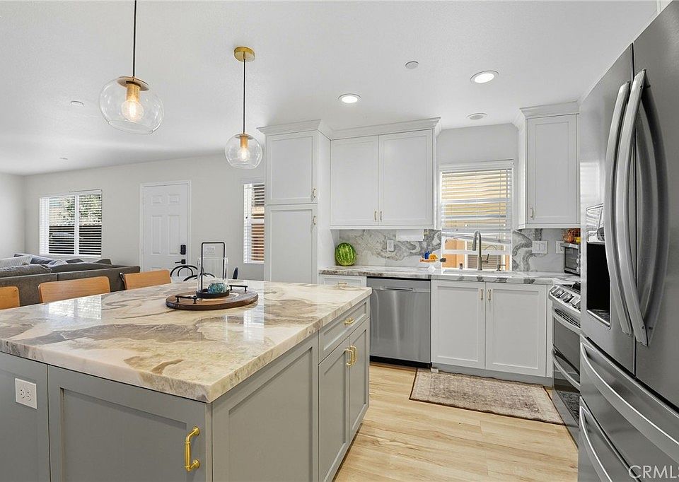Expanded islandModern cabinetsPrivate oasisExquisite marble countertopsRecently remodeled kitchenStainless steel appliancesLvp flooring