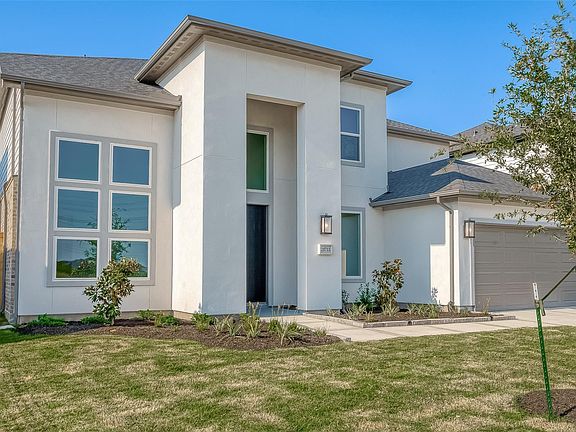 Luxurious living awaits in Avalon at Cypress. This stunning stucco home features 5 bedrooms, 4.5 baths, and unique architectural charm. The main level offers a formal dining room, a home office with glass doors, and a guest suite. A bright, airy living space with a two-story family room, wall of windows, and a cozy fireplace. The large island kitchen includes a butler pantry, stainless steel appliances, gas range, and tile backsplash. The owner's suite features a luxurious bath with dual vanities, soaking tub, glass encase shower and a vast walk-in closet. Upstairs, 3 bedrooms, a media room, and a game room provide ample space. Enjoy a covered patio and 2-car garage. Community amenities include a clubhouse, pickleball court, playground, and pool.