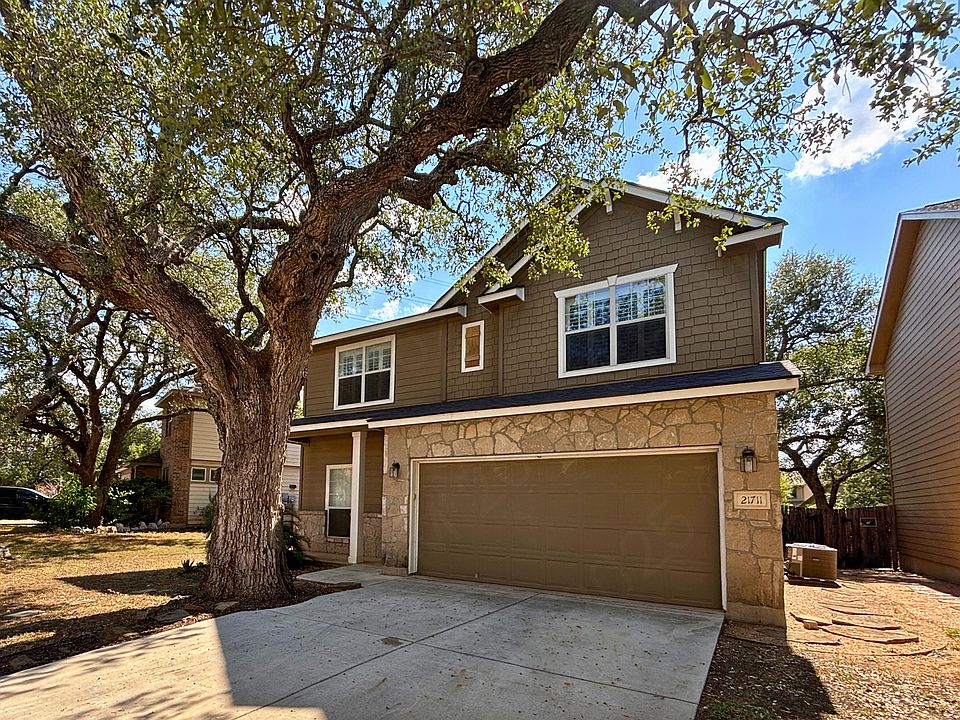 This well-maintained 3-bedroom, 2.5-bathroom home with 2,367 sq ft is located in a desirable gated community. The first floor features wood tile flooring, crown molding, plantation shutters, built-in shelving, and a stone fireplace with a gas starter. The living room is equipped with surround sound wiring. Upstairs offers additional living space with a versatile game room and a cozy reading nook. The home also includes a water softener for added convenience. The backyard is designed for both relaxation and activity, complete with a flagstone pathway and decomposed granite around the rear patio. Tenants will also have access to the HOA pool, which is within walking distance from the home. Conveniently located near Loop 1604 and HWY 281, this property provides excellent access to schools, shopping, and dining. Schedule your showing today!