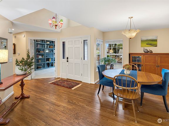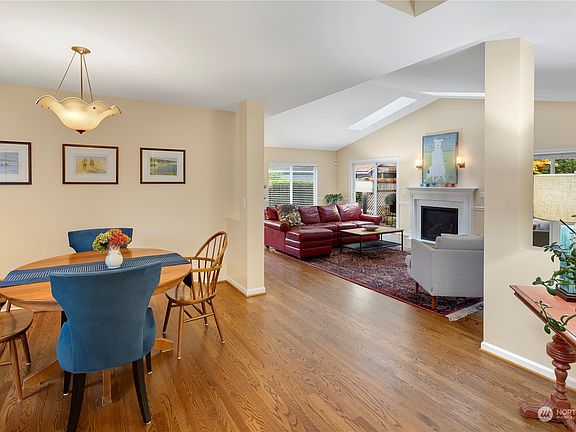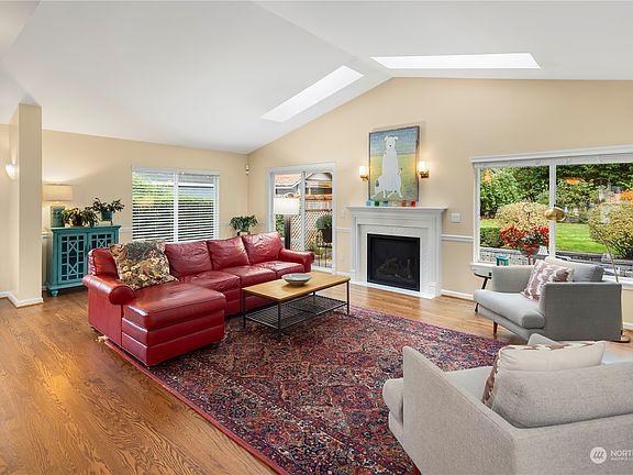 This custom-built contemporary is a must-see! One level living designed with a purpose. Walk into a living space with vaulted ceilings, skylights, fireplace, hardwood floors and a built-in entertainment center. A beautiful kitchen shares this open living without being the center of the room. Quartz countertops, marble backsplash, gas cooktop and a double oven. The primary bedroom has sliding doors leading to your hot tub plus a 5 piece ensuite bath. Once outside you will see how perfectly this home sits on this large lot and within the Edmonds community. Walking distance to schools, parks, and shopping. Minutes from downtown Edmonds. Fully fenced and gated with mature landscape. Large 3 car garage with high ceiling for all your hobbies.