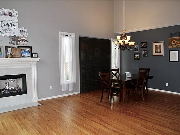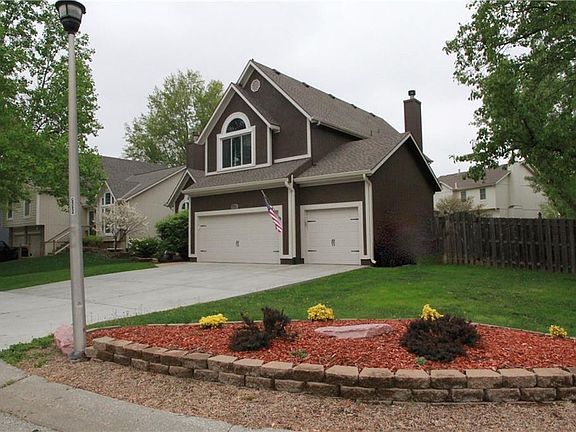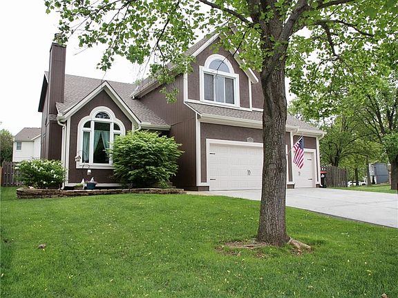 Beautiful 2 story 3 car garage on a large corner lot. Wow 2 living areas with 2 fireplaces for those cold winter days. One of my favorite attraction is the unique hidden pantry in the formal dining area. Updated kitchen has granite, breakfast area and hardwood floors throughout. Walk up the winding stairs to the master bedroom with vaulted ceiling then into the master bath with double vanity and separate shower and tub. If you enjoy entertaining inside or out check out the finished basement for those chiefs games or head outside for a fun day of grilling on the deck. Don't