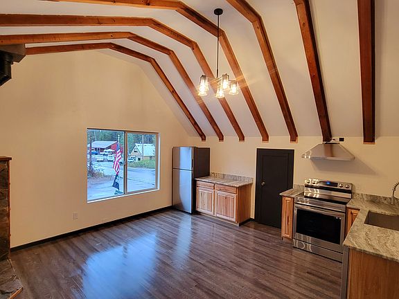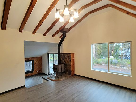 Beautifully and completely remodeled 1-bedroom, 1-bath mountain apartment in Soda Springs featuring vaulted ceilings, a cozy wood-burning stove, and excellent natural light throughout. Unit is approximately 900sf. The large open kitchen includes new stainless appliances, quartz countertops, new cabinets and fixtures. New luxury vinyl plank flooring throughout. Enjoy a large private deck with peaceful forest views. This bright, second-floor unit is part of a mixed-use building which includes 3 separate apartments. Located close to I-80, Sugar Bowl and Royal Gorge. Shared washer/dryer and abundant on-site parking provided. Ideal for Sugar Bowl, Boreal and Royal Gorge employees and other long-term tenants seeking a quiet mountain home.