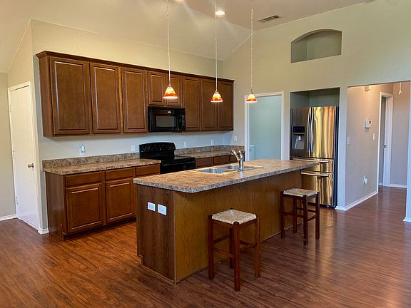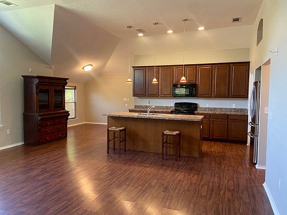 Bright open floor planWood-look laminate floorsVaulted ceilingsWalk-in closetAmple counter spaceTons of cabinets