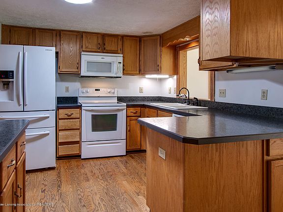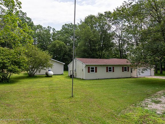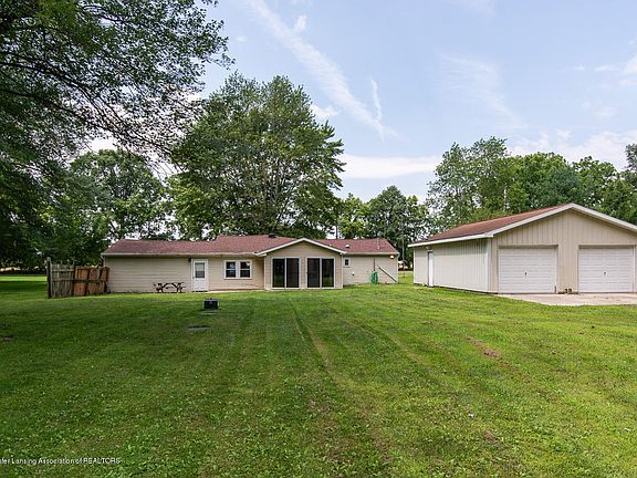 Holt School District! This three-bedroom ranch with an attached two car garage sits on a partially wooded 1.563 acre lot with a 20x30 pole barn. The kitchen sits at the heart of the home and is open to the four seasons room, living and dining area. Oak cabinetry with white appliances - Samsung fridge with pull out freezer drawers and water/ice dispenser. Hardwood floors run through the kitchen, dining and four seasons room. Master bedroom with vaulted ceiling and walk in closet. First floor laundry. Newer roof and vinyl windows. Drain field new in 2017.