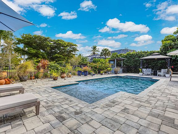 This is a must see home that delivers an exceptional combination of indoor comfort and outdoor living. This inviting single family residence offers a smart and comfortable layout that includes three full bedrooms, two bathrooms, and a versatile office or den. The main living area features an open concept design that flows seamlessly into a well-appointed kitchen with white shaker cabinets, stainless steel appliances, and a functional island that enhances both storage and seating options. The primary bedroom is generously sized and includes a remodeled en-suite bathroom with dual sinks and a large walk-in shower. Flooring consists of wood look porcelain plank flooring throughout the main areas, with plush carpet in the two guest bedrooms. The outdoor space truly sets this home apart, with an impressive pool area that showcases new brick pavers, a tiki bar with a mounted TV, a gazebo with a dedicated sitting area, and peaceful views of the community lake. The home offers just under two thousand square feet under air along with a two car garage. It has been meticulously cared for and delivers a warm, inviting environment that feels immediately comfortable.