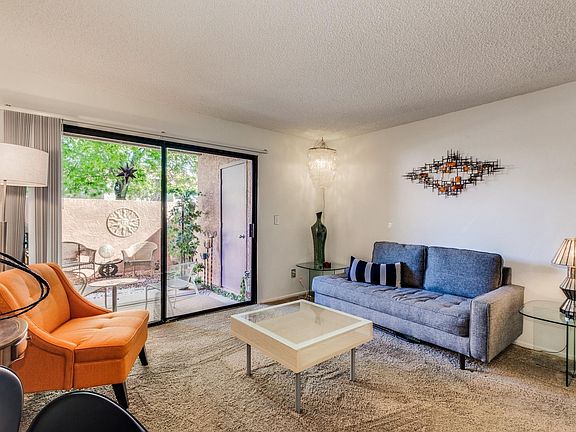 Woodland Place Condos. Exceptional Ground floor unit with North facing patio which open to inner courtyard of the complex. Clean and move in ready with newer AC Unit (2019), newer carpet interior paint (2018). Both bedrooms are generous in size and Owner's suite has private bath and walk in closet. Washer/Dryer stacked unit and refrigerator convey. Steps from community pool, hot tub, clubhouse. HOA covers ground &, street maintenance, trash, water, sewer and building exteriors. Each unit has a covered parking spot. Awesome NE Tucson location minutes to shopping and convenient to restaurants, entertainment, Udall Park, and many outdoor activities.