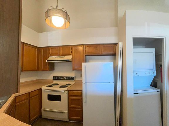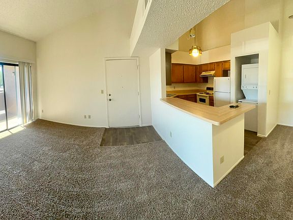 Freshly Painted, New Flooring! Second floor, 2-bedroom, 2-bath condo has vaulted ceilings, breakfast bar, stackable washer & dryer in unit, south facing windows and balcony for nice lighting. Community pool and spa. Water is included. Tenant pays electric.