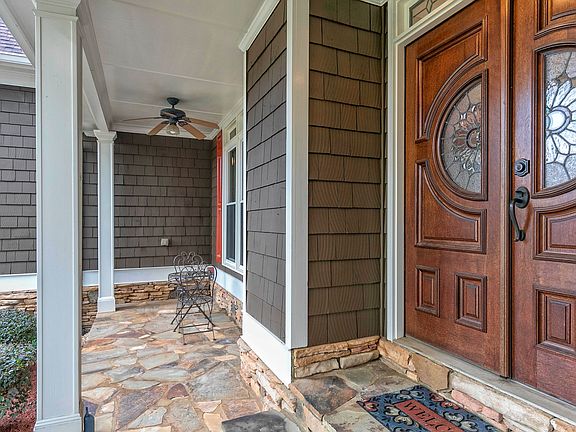 From the stacked stone front porch & solid wood designer door to your very own 5-star resort-style master suite & immaculate backyard with jacuzzi hot tub & privacy fence, welcome home to your very own oasis! Featuring an open light-filled floor plan, trey ceiling DR leading to 2 story GR with rock fireplace & double French doors opening to a large screened porch & deck perfect for entertaining. Retire to the presidential suite on the main, featuring 2 walk-in closets with built-ins, tiled walk-in shower & separate vanities with glass bowl sinks. Upstairs features 2 large bedrooms with attached bathrooms, a large office with a custom desk, & a huge bonus room. Make your way to the expansive finished basement with a large game room, sitting room & separate workout room, including a rock-climbing wall! This home truly is a must-see!