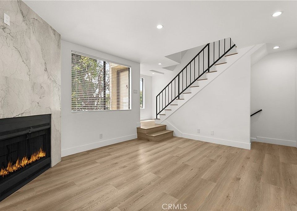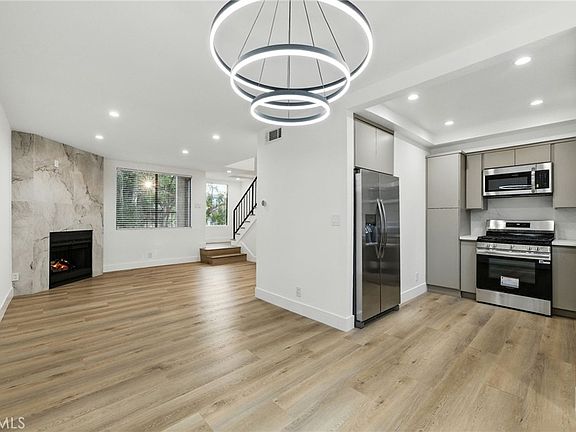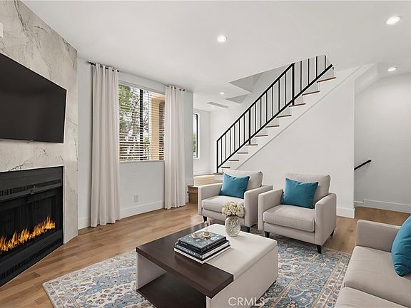 Brand new! 2 bedroom 2 bath townhome with its own attached 2-car garage. Upon entrance you are greeted with a very spacious sized living room featuring an exquisitely tiled floor to ceiling fireplace and floating shelves bar area offering a contemporary ambience. Just upstairs, the master bedroom ensuite resides, which features a large walk-in closet and luxuriously remodeled bathroom with rainfall walk-in shower and plenty of vanity space. This home carries elegant tiling in every room, all illuminated and designer light fixtures, and functional recessed lighting throughout. Additional amenities include a private attached oversized 2-car garage, sparkling community pool, and impeccably maintained grounds. Small complex located on a quiet cul-de-sac street, just moments away from Topanga Mall, The Village, fine shopping and dining, schools, and easy access to the freeway.