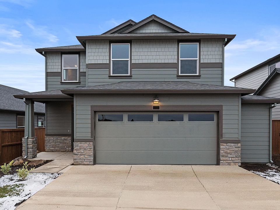 New construction homesite in Bend! Stevens Ranch in Bend is your gateway to serene living near Reed Market Rd, close to nature and historic downtown. This magnificent Porter two-story floor plan has 5 beds, 3 baths, with a bed and bath on the main floor that is ideal for an at-home office or a guest bedroom. The great room has designer features with a fireplace. The lavish kitchen has beautiful shaker cabinetry, quartz countertops with backsplash, and stainless-steel appliances like a gas range/oven and microwave. The primary bedroom is spacious, it has a walk-in closet, and an en suite bathroom with a double vanity. The hall bathroom adds extra comfort with a double vanity as well. This home comes with an extended garage and a covered patio!