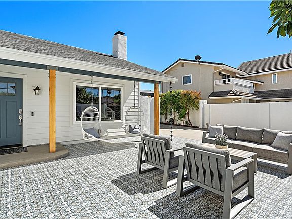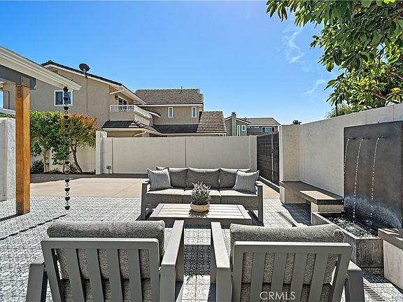 Situated at the end of a quiet cul-de-sac in the highly sought-after South of Hamilton pocket of Huntington Beach, this beautifully remodeled and upgraded residence offers the ideal blend of indoor-outdoor coastal living. From the moment you enter the gated, private courtyard with a tranquil fountain, you'll feel a sense of calm and privacy that sets this property apart. Step inside to an open concept floor plan featuring vaulted ceilings, abundant natural light, and a light and bright decor. A floor-to-ceiling marble fireplace surround anchors the spacious living area, creating a sophisticated focal point in your great room.The chef’s kitchen is a true showstopper, complete with white shaker cabinets, stainless steel appliances, quartz countertops, a large center island, and ample prep and storage space, ideal for hosting gatherings or enjoying quiet mornings at home. This home’s flexible floor plan includes two ground-floor bedrooms, including a spacious primary suite with retreat, two walk-in closets, and a spa-inspired en-suite bath with dual vanities. Upstairs, you’ll find two spacious additional bedrooms and a bath, offering plenty of space for family, guests, or a home office. Seamlessly extending your living space, the property has a beautiful California Room equipped with bi-fold windows, a fireplace and TV, creating a perfect year-round entertaining space. Step outside to your resort-style backyard, complete with a spa, outdoor shower, sink and food prep station, mature vegetation and optional RV / boat parking, all designed to elevate your coastal lifestyle. Just minutes from the beach, top-rated Eader Elementary, daily needs and Newport Beach / Costa Mesa.
