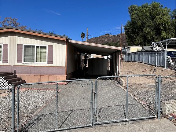 BOM - Back on the Market - Buyer didn't perform - Don't miss this second chance to own this great property!! This 2 Bedroom, 2 Bath manufactured home is situated on a large lot with plenty of room for possible additional housing and/or off road vehicles, toys, boats, or anything else that you need room for! Owner just installed NEW PERMANENT FOUNDATION with 433A Certification, so FHA and Conventional and most other financing should be readily available!! NEW Metal Roof installed in 2023! Septic System just pumped and certified. Kitchen boasts a newer free standing stove, a refrigerator and a free standing additional freezer. Newer vinyl windows, and central air conditioning and heating throughout home. Owner updated most plumbing to copper when water heater installed approx ten years ago (buyer should confirm). Inside laundry room with newer matching washer and dryer included. Attached carport with direct access to home from side door, plus additional driveway on west side of property as well. Plenty of room and access for RV/Boat/Trailer or any other extra vehicles or outdoor toys to park on the property. Two large sheds will stay with the property, as well as a free standing metal framed gazebo. There also is an additional enclosed sun room that expands the front bedroom and porch areas. Just a few minutes from Lake Elsinore, Shopping and restaurants very close, as well as convenient freeway access. Don't miss out on this very affordable home and property with no HOA restrictions or costs - the possibilities are endless!!