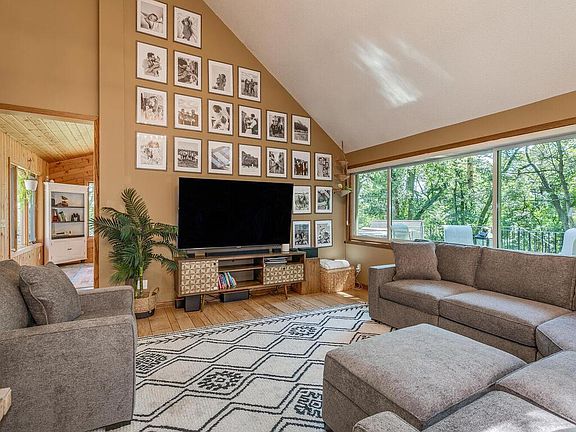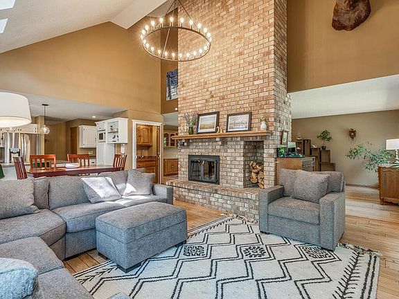Fall in love with the tranquility and sounds of nature right out your door step in this home situated on more than 2.5 acres on Star Lake. Hardwood floors and the soaring ceilings will capture your attention, followed by the abundance of natural light and welcoming ambiance this home exudes. The large brick fireplace and stunning chandelier are incredible accents, adding character and charm. Cooking will be a delight in the open kitchen with excellent cupboard and storage space. Spend hours in the sun room watching animal life walk by and overlook Star Lake. Upper level offers three spacious bedrooms. The primary bedroom features a private 3/4 bath with heated floors and a beautiful tiled walk-in shower. Bonuses in the lower level include a beautiful gas burning fireplace, fantastic counter space and built-ins for hobbies, and a sauna for utter relaxation. The sprawling acreage is a dream! Newer outdoor stairwell takes you to the lake and the permanent dock and boat lift. Every feature of this home will impress you!