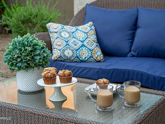 Welcome to Fireside and this gorgeous home with a private casita! The popular Asacha model offers a bright, open great room floorplan that blends modern style with everyday comfort. The chef's kitchen features stainless steel appliances, a gas cooktop and both an eat-in nook and formal dining—ideal for entertaining. The spacious primary suite includes dual vanities, walk-in shower, two closets, and a private sitting area/office. There is also a guest en-suite with walk-in closet. The 1-bedroom, 1-bath casita (front door in the courtyard) is perfect for guests or a home office. Step outside to your backyard retreat with lush green space, mountain views, hot tub, built-in BBQ, and a cozy fire pit. Enjoy Fireside's resort-style amenities-pools, fitness center, clubhouse, tennis & more!