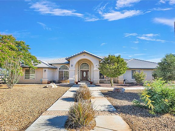 WOW is an understatement! If the 3600+ sq ft 5 Bedroom 3 Bath Deserada build with Multi-Gen Split Floor Plan doesn't already have you galloping to this STUNNING home.... wait til we tell you to BRING THE HORSES and the RV's and any other toys to this 2 acre corner lot! Enjoy a Custom 100x150 HORSE ARENA , a HUGE 50x60x18 Insulated Metal Building with two RV HEIGHT roll up doors all completely fenced front and back, even cross fenced for added convenience! The thoughtfully designed split-floor plan is ideal for multi-generational living arrangements. This meticulously maintained residence features 4 spacious bedrooms and 2 baths on one side and 1 bedroom and full both on the other! Two distinct living areas with cathedral ceilings, complemented by a large den off the kitchen that would be a great Home Theater Room, or Play Room and a versatile bonus room that can be adapted to suit various needs like an office, a game room, or even a home gym! The heart of the home is the large, well-appointed kitchen boasting double Viking Ovens as well as a gas cooktop along with a stainless steel fridge, dishwasher and microwave . Enjoy a walk-in pantry and large center island, ensuring plenty of storage for culinary enthusiasts. The expansive living area offers a beautiful fireplace complete with mantle and hearth. Mosey on over to your gorgeous executive suite featuring expansive ceilings, cozy fireplace and door to access your patio and hot tub! An impressive ensuite bathroom features two sinks with makeup vanity in the middle , deep jetted soaking tub and a huge walk-in shower with dual shower heads and seat!!! Outdoor living is equally impressive with a covered patio overlooking the expansive grounds. Car enthusiasts will appreciate the oversized 3-car garage, while the expansive RV garage offers ample space for two RVs and more. The driveway also features ample room for parking as well! A dedicated shed provides additional storage for tools and equipment. For those with equestrian interests, the property includes a well-maintained horse arena and fencing surrounding the entire perimeter, ensuring safety and space for beloved animals. Located in a tranquil setting with mostly paved roads and just a short trot on well maintained dirt frontage, this property offers the perfect blend of comfort, functionality, and outdoor lifestyle.