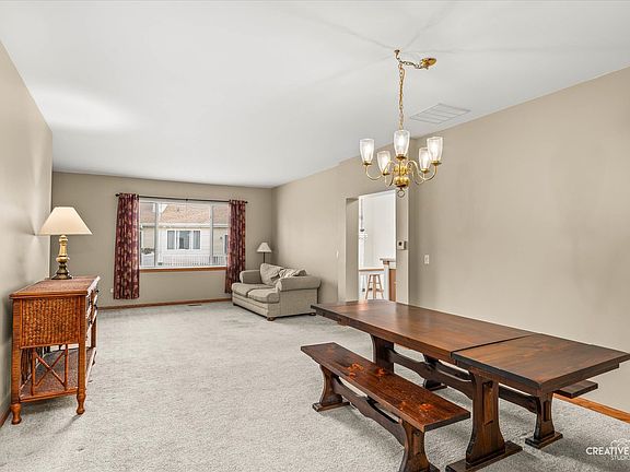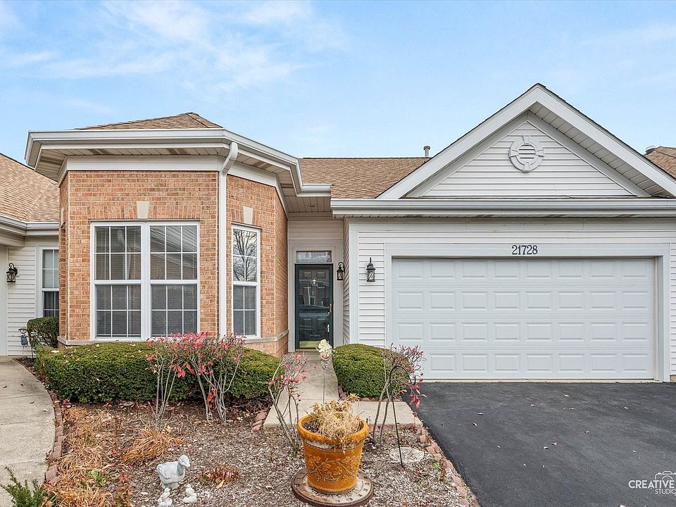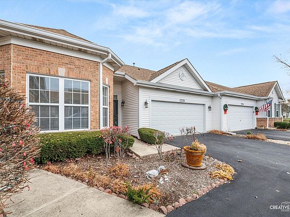 Welcome to this beautifully maintained ranch-style townhome, ideally located in a peaceful cul-de-sac in the heart of Carillon, one of the most sought-after 55+ active adult communities in the southwest suburbs. Inside, the open-concept layout features two bedrooms and one full bath designed for comfort and convenience. The spacious great room offers flexible living and dining areas, while the kitchen boasts ample cabinetry, a pantry, and connects to a bright breakfast room. Step through sliding glass doors onto your private patio and soak in the surroundings. The primary bedroom features a walk-in closet and direct bath access, while the second bedroom, accented by a charming bay window, can easily double as an office or guest room. Updated flooring in the kitchen and entryway. Carillon's unbeatable location offers resort-style amenities just steps from your door, including golf, pools, tennis, pickleball, fitness center, clubhouse, and endless social activities. Enjoy 24-hour gated security, beautifully maintained grounds, and a true sense of community. Even better? You're just minutes from I-55, shopping, dining, and everything you need for daily convenience or weekend fun. Whether you're looking to stay active or enjoy a quiet, maintenance-free lifestyle, this home offers the perfect blend of privacy, community, and prime location. Garage door, 2025, Dishwasher 2022