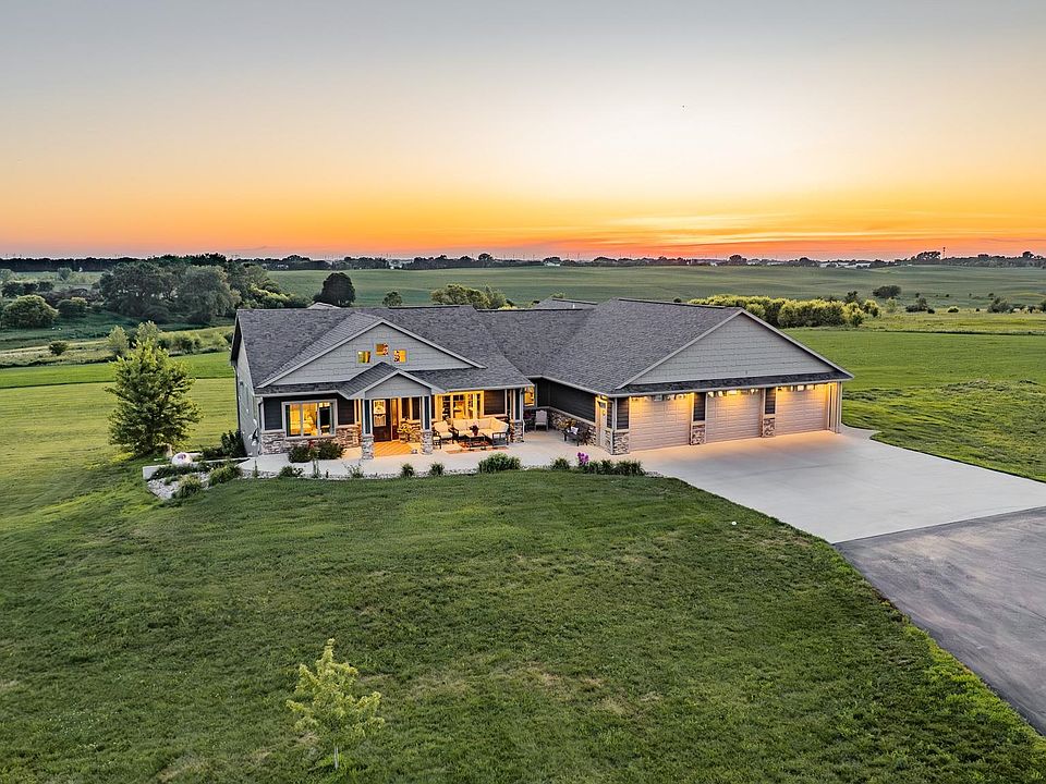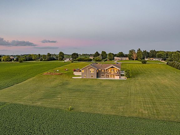 Location, Location! Have you been searching for some elbow room? Look no further! This stunning 4-bedroom, 5-bathroom home sits on just under 10 acres, less than a mile from town on a hard-surface road, with the serene Mill Creek running along the edge of the property. As you step through the front door, you're welcomed by a tall, grand foyer with sightlines straight through the living room to breathtaking backyard views. Enjoy the outdoors from multiple covered patios and decks—perfect for relaxing and soaking in nature. The spacious living room flows into a large kitchen designed for entertaining, featuring beautiful cherry cabinets, granite countertops, a walk-in pantry, and a cozy dining area. There’s also a versatile office or sitting room and an expansive owner’s suite for your private retreat. Convenience is key with laundry rooms on both levels. The walk-out lower level offers a large family room, perfect for gatherings or movie nights. To top it all off, the oversized, finished garage includes in-floor heating—great for Midwest winters! This property has so much to offer—you truly have to see it to appreciate it all!