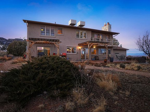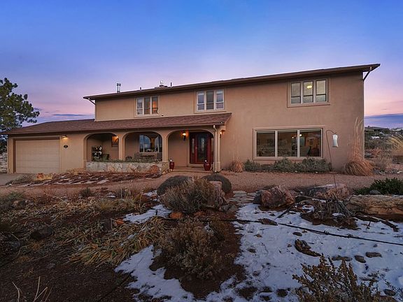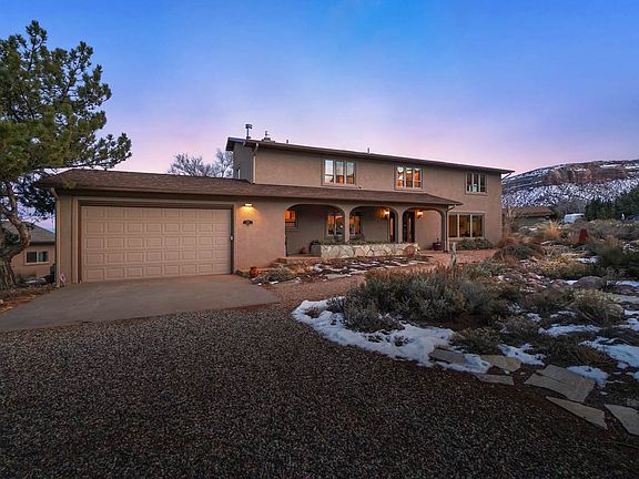 Gorgeous two story stucco home with personal views of the Colorado National Monument! Nestled in the heart of the Redlands on almost 2 acres this home is minutes to the monument entrance as well as amazing hiking/biking trails. Greeted by a stunning spiral staircase upon entry, you will love the Tuscan/ Provence feeling throughout this grand home. Open and spacious with every window capturing a unique view; you will want to linger. Designed for entertaining the main level has a formal living room, chef's style kitchen, cozy family room with a fireplace and access to the rear deck, a large formal dining room, an office and full bathroom. Up the winding stairs you will find a split bedroom design with the master suite (5 piece bathroom) on the north end and three additional bedrooms plus a full bathroom on the south end. Beautifully xeriscaped, a detached over-sized garage and RV carport!